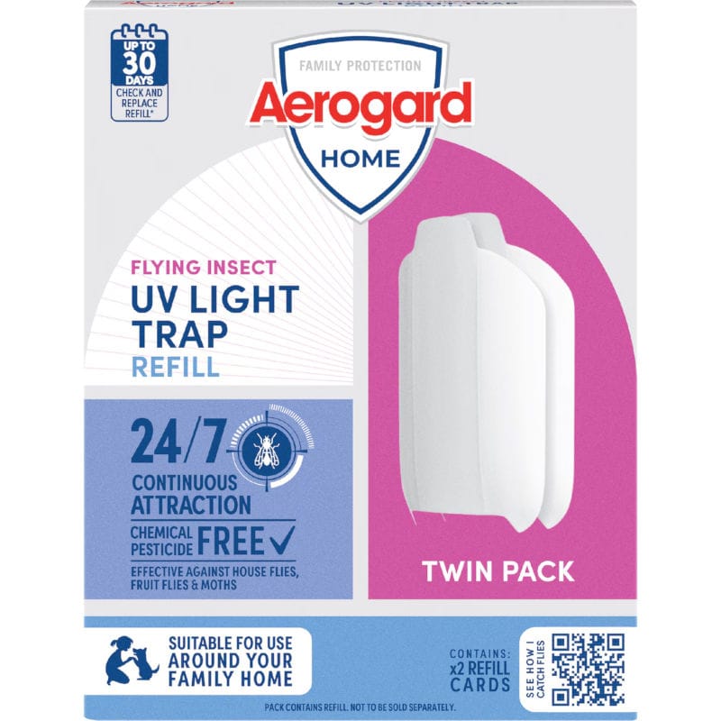 Tackle unwanted flies with the Aerogard Home Flying Insect UV Light Trap. Using blue UV light, it silently attracts and traps house flies, fruit flies & moths—without chemical pesticides, odours or noise. Suitable for use around your family home, , with 24/7 continuous attraction.