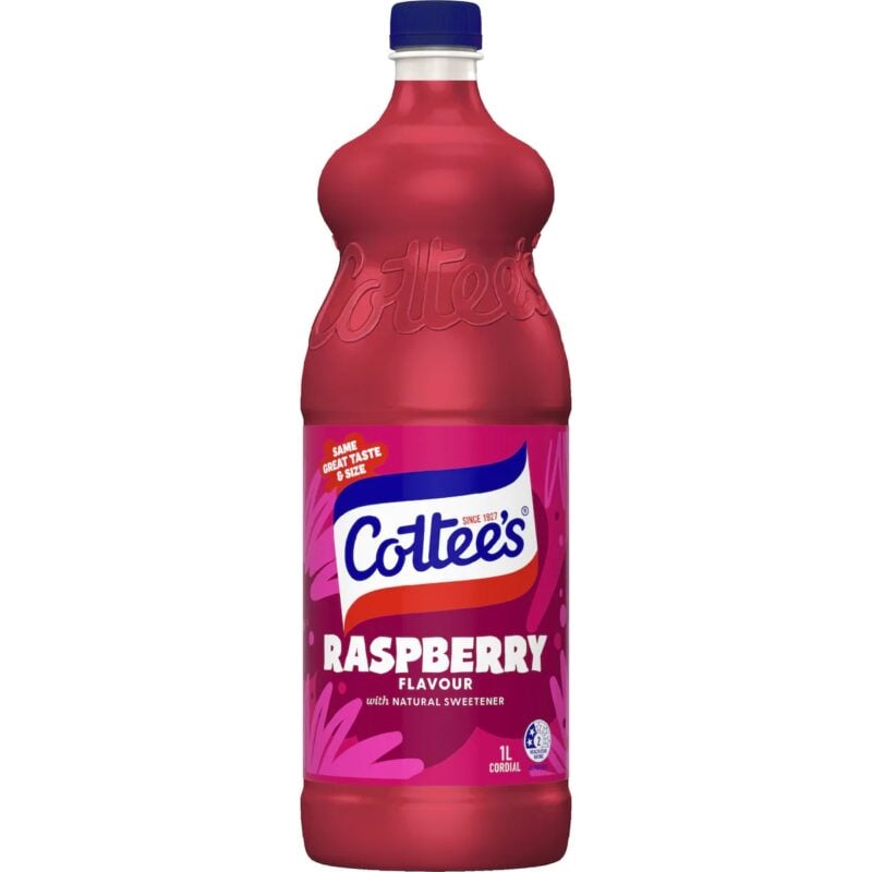 Cottee’s Raspberry Cordial 1L. Mix 1 part cottee’s to 9 parts water.