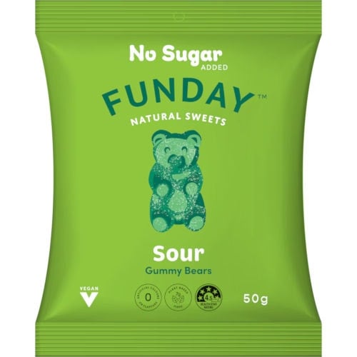 Funday Natural Sweets No Sugar Added Lollies Sour Gummy Bears 50g.