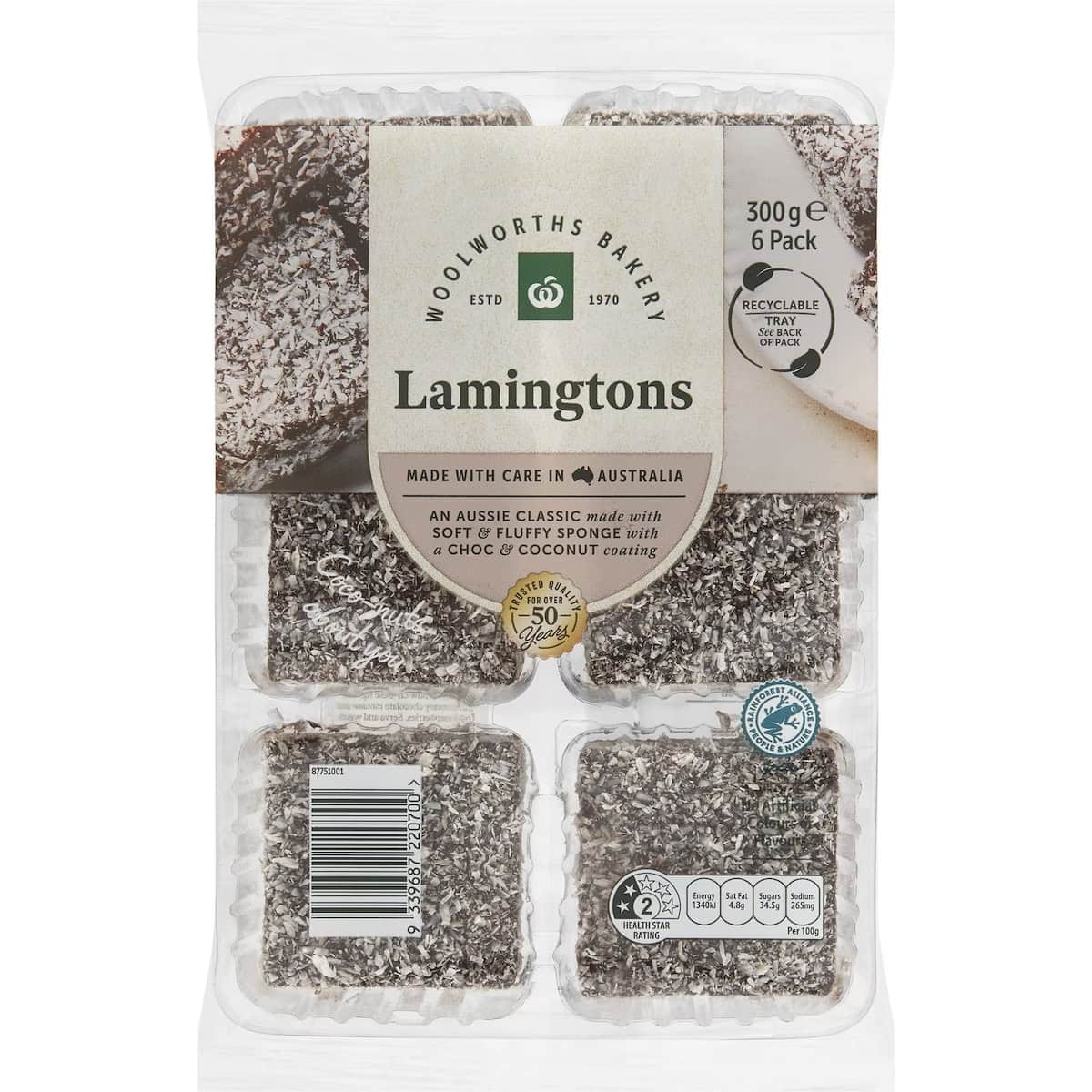 Lamingtons 6 pack 300g. NOTE: Best before is generally 5-15 days from purchase date. Please purchase a different product if this will be an issue.