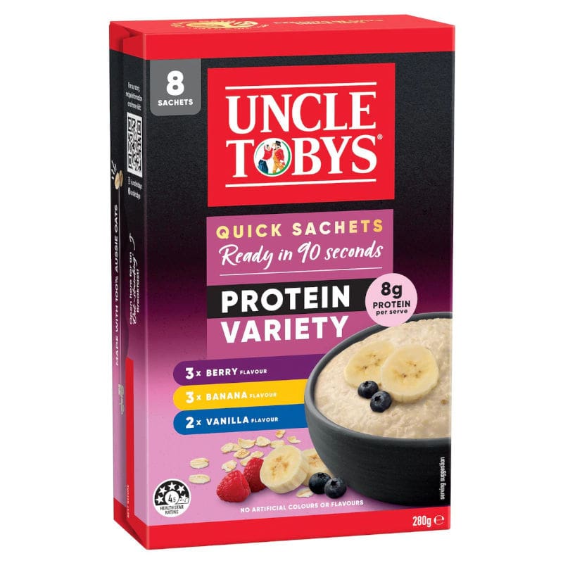 Uncle Tobys Oats Sachets Protein Variety 8 pack 280g.